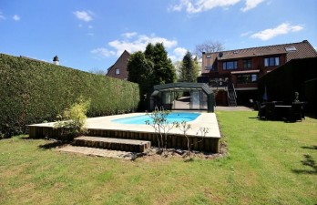 VENDU - Située dans un clos tranquille et verdoyant à proximité du centre et de la gare. Nous vous proposons de découvrir cette superbe et confortable maison complètement renovée en 2014 sur un ravissant jardin (sud-ouest) de +/- 8ares avec une grande terrasse et piscine chauffée. La maison développe 207m² habitables, et propose au niveau jardin : une très grande chambre (33m²) qui pourrait être utilisée pour une profession libérale ou comme studio, une salle de douche et un grand garage. Rez-de-chaussée : un hall d'entrée avec wc, un spacieux séjour comprenant une salle à manger et un salon avec une cassette, une cuisine Mi-Bois hyper-équipée ouverte. A l'étage : la chambre parentale, une 2ème grande chambre en L, une salle de bain (bain, douche avec hammam et WC), un coin bureau avec mansarde qui pourrait être utilisé comme chambre. Chauffage central au gaz avec chaudière à condensation. PEB D. A visiter sans tarder ! Renseignements et visites au 0471/31.26.56 ou 010/24.46.79 ou www.blueimmo.be.