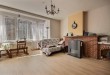 - Séjour 17 m² avec coin cuisinen (four, taque de cuisson, hotte, frigo)