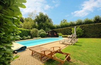 À l'extérieur, vous profitez d'un grand jardin, d'une piscine, d'une terrasse en bois ainsi que de 3 garages et emplacements de parking.